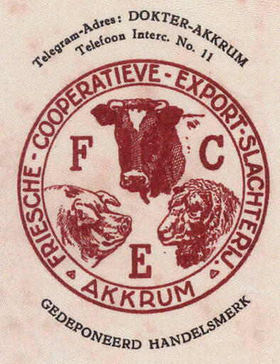 Friesche Coöperative Exportslachterij (F.C.E. 1917-1964).