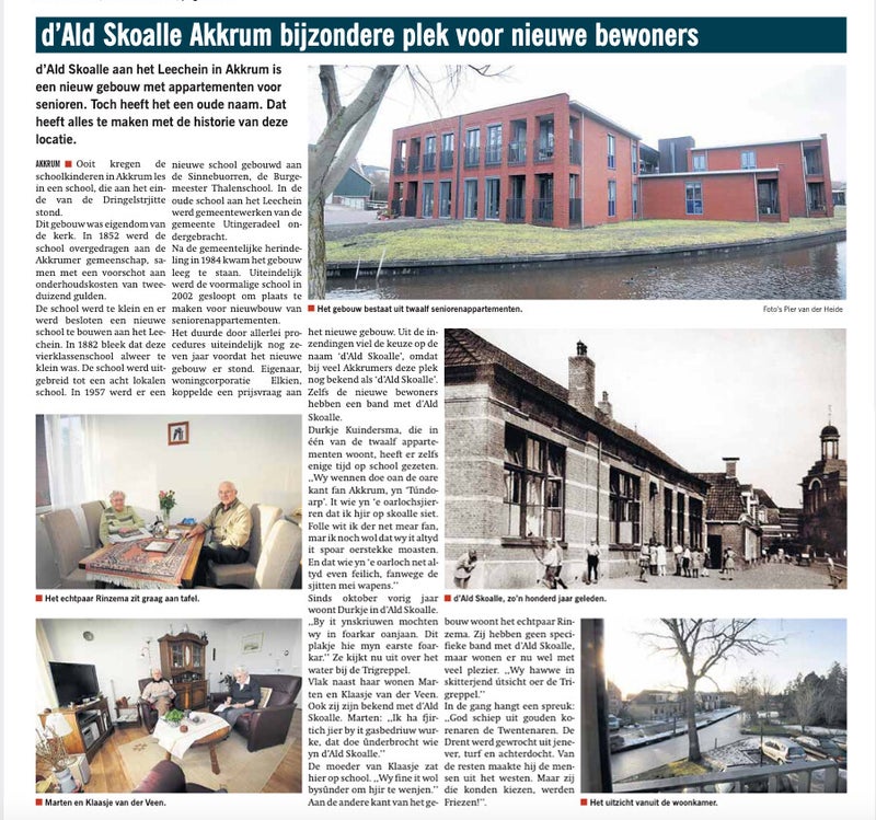 Der is lang-en-breed praat, oer wat der nei de skoalle barre moast. Der wiene ferskate plannen, mar úteinlik is it in appartemintengebouw mei tolve wenten wurden foar senioren (55+) (Yn 2009)