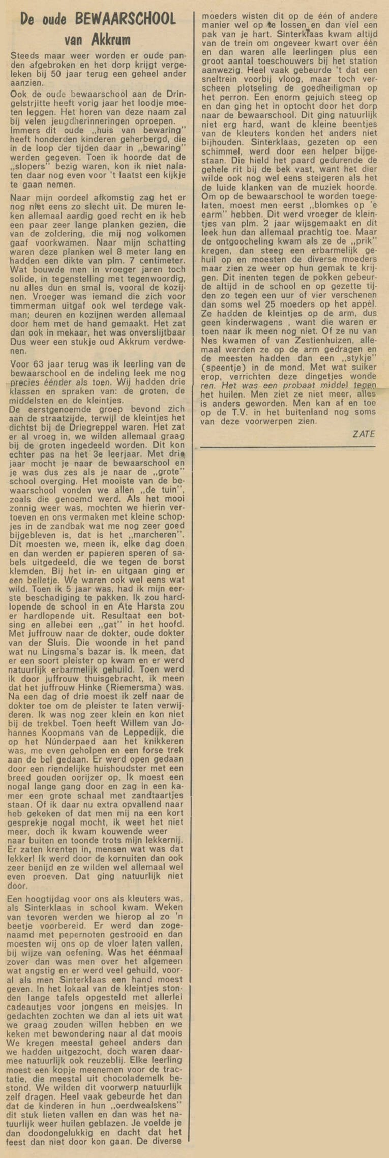 Toen in yn 1881 de zgn. Franse school aan de Dringelstrjitte opgedoekt werd, huurde het Nut het gebouw en richte dat in tot Kleuterschool. Het kreeg de naam van: Nutsbewaarschool" maar werd meestal beduid met De Lytse Skoalle ( De kleine school). Omdat Akkrum zich uitbreide, werd de school te klein en bovendien was het gebouw zeer bouwvallig. In 1968 kon een nieuwe kleuterschool aan It Hopmanshof worden geopend, nadat een deel van de kinderen in het groene kruisgebouw waren ondergebracht. Na de trent van de tijd moest de school in naam hebben en dat is toen "It Beukerhof" geworden. (Uit Toponymy fan Akkrum en Nes fan Merten Bakker. 1982).