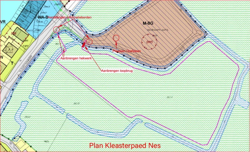 Na enkele toespraken en dankwoorden in de kantine van de Nesser manege, zijn de aanwezigen van de bijeenkomst naar de begraafplaats aan de Kleasterwei gegaan. Daar waren de Kromme Knilles sjongers in monnikkenpei, die hun monnikkenlied lieten horen. Daarna waren het bestuursleden Andries Renema en Ronald van der Starre, die het kleed van het informatiebord weg trokken en het bord werd onthuld. Daarmee was het Kleasterpaed officieel geopend. (28 november 2015).