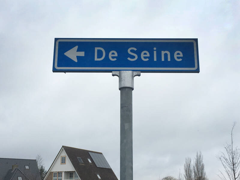 Boppe; Dizze seine hinget oan in gevel oan de Seine 33 op Nes.