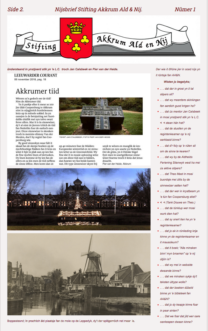 Side 2. Nijsbrief Stifting Akkrum Ald & Nij. Nûmer 1