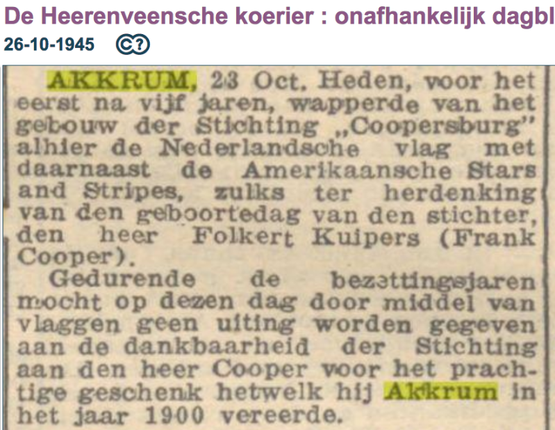 Drs. Wiebe de Haan: "Doe't dêr trije Kanadezen yn Akkrum te hôf brocht binne, stie ik oan'e oare kant fan'e sleat nei de militaire begraffenis te sjen". (1944).