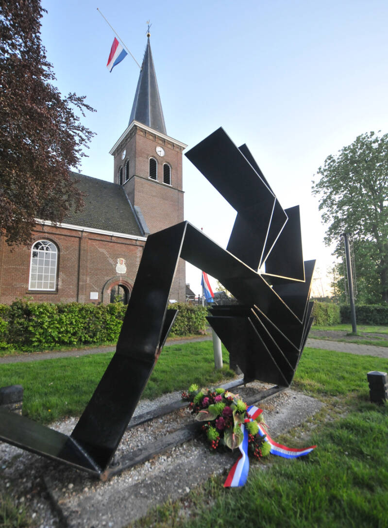 Boven: Oorlogs monument "De Untwrakseling" 1940-1945 van Ids Willemsma, oud Akkrumer Kunstenaar.