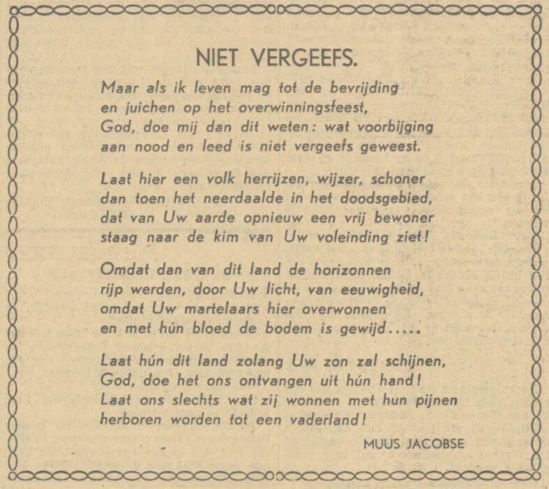 Boppe: Leden fan de N.B.S. (Nederlandse Binnenlandse Strijdkrachten), mei Martha Greveling út Akkrum en Hindrik de Vos. Twadde rige fan boppe, 9e fan lofts. Opname is makke koart nei de WO 2.