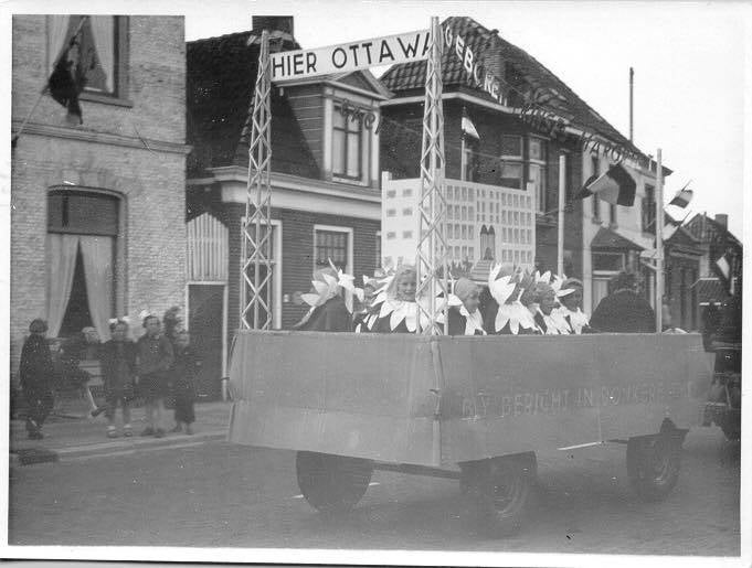 Boven- en onderstaande 5 foto's: Wie kan ons meer vertellen over deze 5 foto's? Zelf denken we dat het een optocht van een bevrijdingsfeest moet zijn. Misschien wel van het jaar 1955.