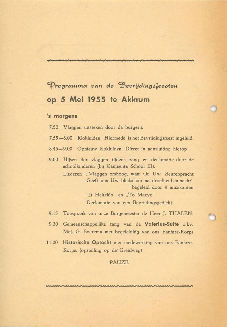Onderstaand een paar blz. uit het programmaboekje van het 10 jarig bevrijdingsfeest. (5-5-1955).