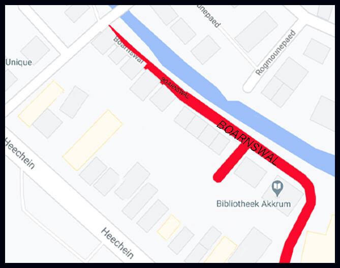 In een quotatie uit 1688 over het uitdiepen van de Trigreppel vindt Bakker enkele keren een aanwijzing: "wegens zijn huys aan de Boornswal". Ook bij reparaties aan de Wide Steech en de Smelle Brêge komt hij de Boornswal weer tegen. In 1955 is de Boarnswâl in tweeën verdeeld; het westelijke deel van de Smelle Brêge kreeg de naam van Bûterwâl. De straat oostelijk van de brug bleef Boarnswâl. De steegjes, die eertijds op de Boarnswâl uitliepen, zijn met de sanering van het dorp meest opgeruimd. Er kon van de Smelle Brêge naar het Brêgegat een nieuwe weg worden aangelegd, die in 1955 de naam "Boarnswâl" kreeg. (Uit Toponymy fan Akkrum en Nes fan Merten Bakker. 1982).