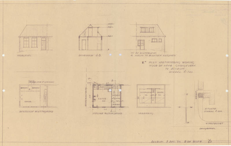 Understeand in keapacte út 1933: "Een woonhuis met erf en bleekveld, nabij de Driegreppel op Vinkeburen te Akkrum". (2019 Finkebuorren 3, Hûs fan Jan Hollander. Mei tank oan © Jan Hollander).