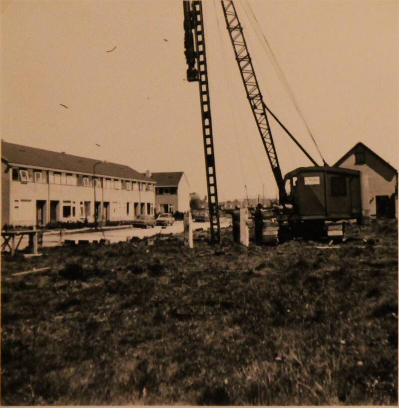Boppe-boven: Foto van kruising Leppedyk met it Finlân. Het betonijzer ligt klaar voor de woningen aan het Finlân. (Foto: © Cobi Grossoo, 1970).