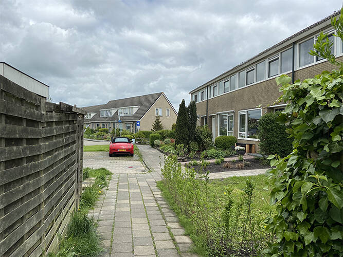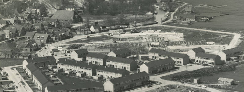 Boppe: Rjochts op boppesteande foto in diel fan de G S. Ruiterstrjitte. (Foto: © Aerophoto Eelde,1975).