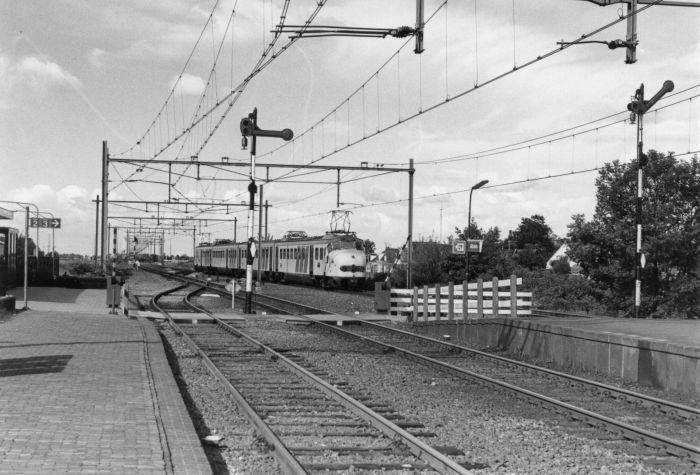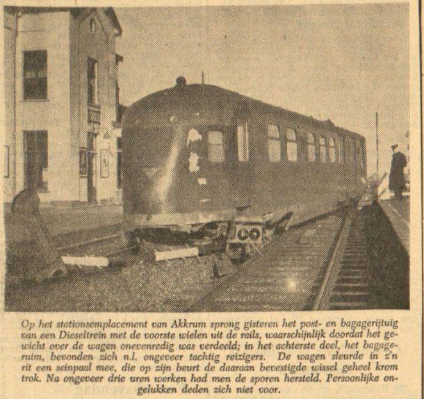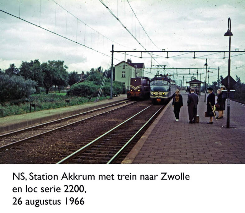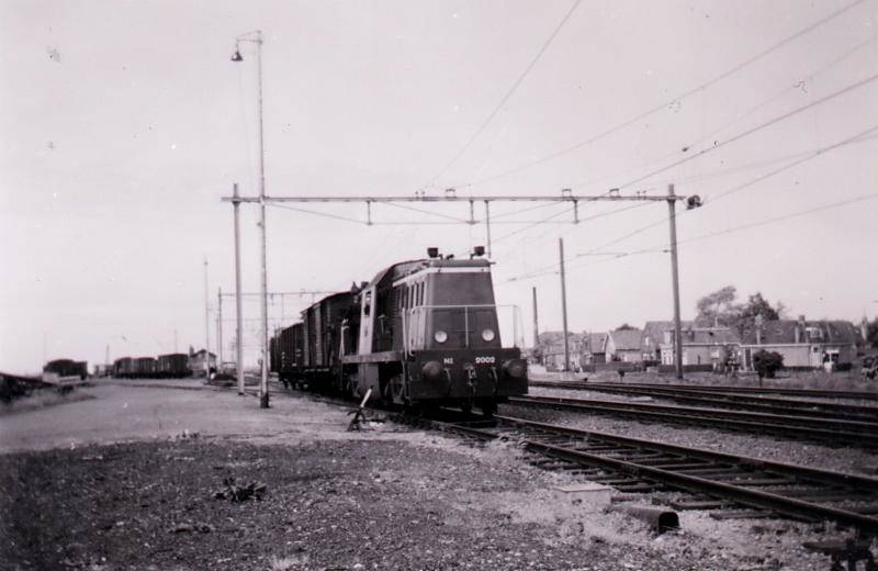 Boppe/boven: Links, in 1952 rangeert de 2002, een door NS van het USATC overgenomen dieselloc. met de buurtgoederentrein in Akkrum. (Foto: 1952. foto K. Okkinga). Coll.© W. Hoekema).