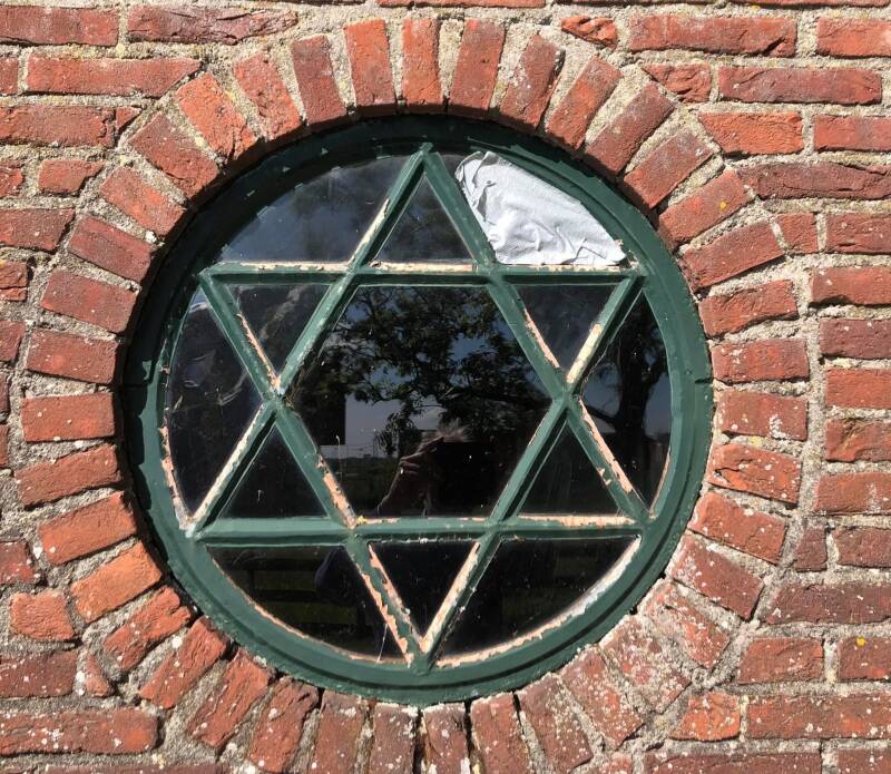 Bovenstaand de boerderij van Kerst Hijlkema aan it Heechein. Daaronder de achterkant mei het koeienvenster met ster. Wie weet wat daar de betekeninis van is?