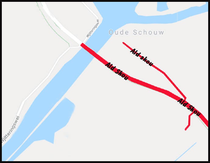 Rienks en Walther nemen in hun "Binnediken en Slieperdiken" aan, dat met de aanleg van wegen yn de 10e eeuw de Slachte aansloot aan de Himdyk en de Griene dyk, maar later (in de 13e eeuw) met het doorgraven van de Wjittering de verbinding verbroken is en een overzet ingesteld moest worden. In 1546 wil het Hof van Friesland de rijweg naar het zuiden verbeteren en schrijft het een brief naar klooster Ealsum, waarin gevraagd wordt om het aanleggen van een brug over de Wjittering. Dit is niet gebeurd; het bleef een schouw. Pas in 1848 kwam een brug over de Wjittering in de Rijksweg. Waarschijnlijk is de naam Alde Skou ontstaan in 1723, toen de Vegelinsdyk naar Joure gereed kwam en een overzet ingesteld werd en Nije skou genoemd werd. Volgens het Floreencohier staan te Alde Skou zo'n twaalf boerderijen, maar in de loop van de tijd zijn de meesten afgebroken en bleven er, wat Utingeradeel betrof, maar vijf over. Daarnaast zijn er nog een paar woonhuizen bijgekomen en verder is de Herberg "Alde Skou" zeer belangrijk (geweest). (Uit Toponymy fan Akkrum en Nes fan Merten Bakker. 1982).