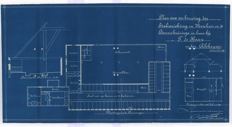 Boppe-boven: Plan voor het verbouwen der stalinrichting en wononhuis in de boerenhuizinge in de huur bij T. de Haan aan de Leppedyk 61. (1920)