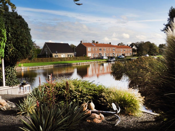 Boven: De achterkant van de Mounedyk, gezien vanaf het Leechein.