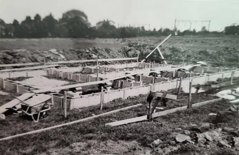 Boppe-boven: Voorbereiding van de eerste woningen aan de Ombocht. (Foto's: © familie Brouwer 1972)