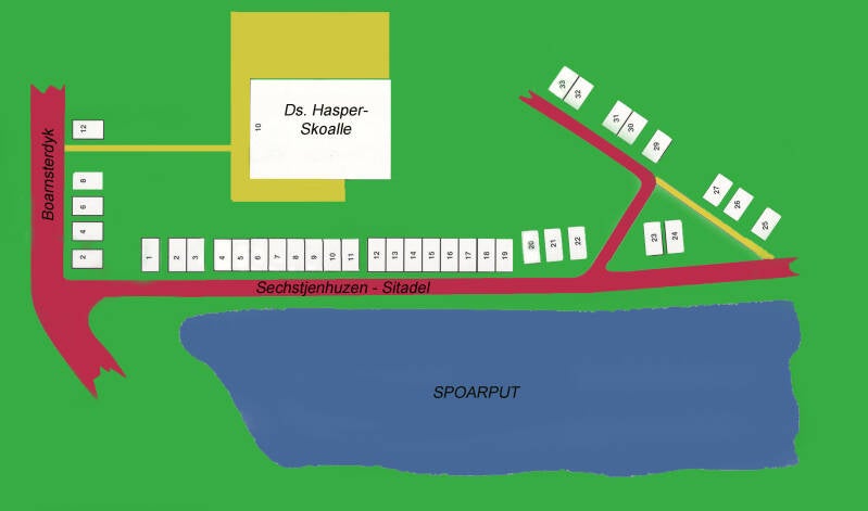 Boppe: Yn 2004 wie it hûndert jier lyn dat de twa blokjes fan acht wenten boud binne. Sechstjinhuzen (Zestienhuizen) neamd. Yn it boekwurkje (Krapoan 100 siden) dat doe makke is, stean in soad famyljefoto's fan minsken dy der ea, oant 2004, wenne ha. (Boekjes binne NET mear te keap).