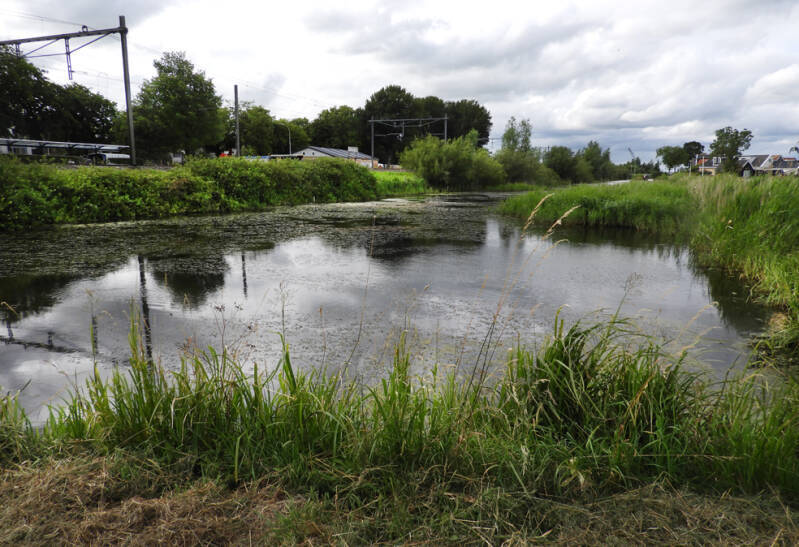 Boppe: De spoorput fanôf de Boarnsterdyk. 'Hast tichtgroeid'. July 2019.