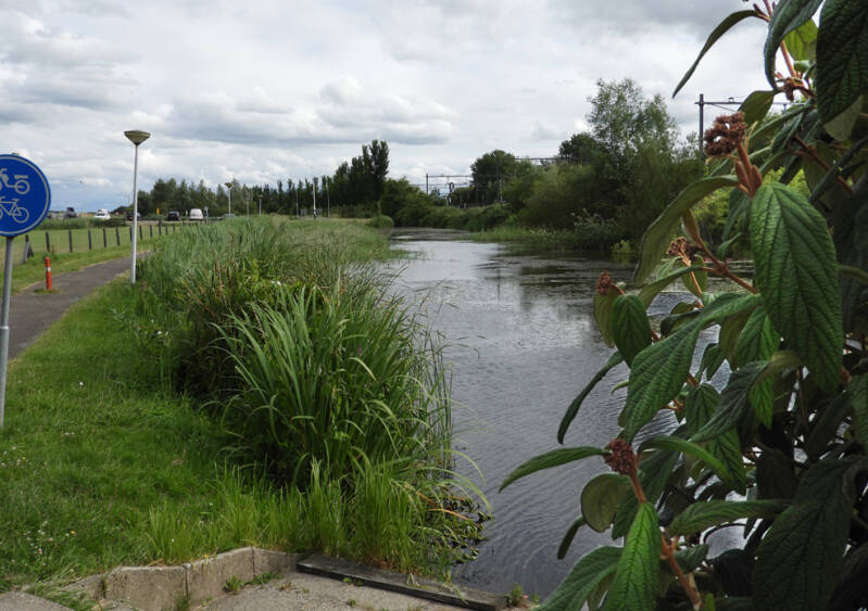 Boven de spoorput vanaf de Boarsnsterdyk. 'Bijna dichtgegroeid'. Juli 2019.