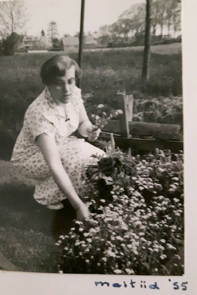 Boppe: Dit is Beppe Janna Hollander-van den Bos (26 mei 1889- 22 april 1967) njonken har wente oan de Sitadel 33 oan it húshimmeljen. (Sy wennen yn de Lêste wente oan de Sitadel). (Foto's: Om 1960 hinne). (Foto's: © Froukje Nora Stoker-Hollander)