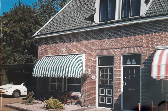 Boppe: Janna en Wouter Hollander by harren grientetún oan de Sitadel en foto midden: breidspear Froukje Nora Hollander en Harry Stoker, dy't op 10 des.1963 yn it houweliksboatsje stat binne. Rjochts Janna Hollander mei de Ds. Hasperskoalle op 'e éftergrûn. (Foto's: © Froukje Nora Stoker-Hollander).