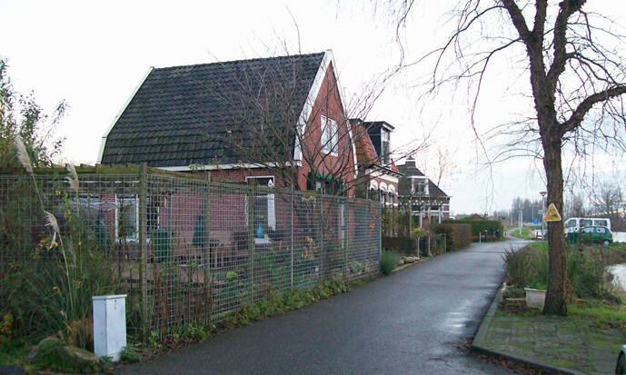 Boven: De hoek Boarnsterdyk met de sitadel (rechts).