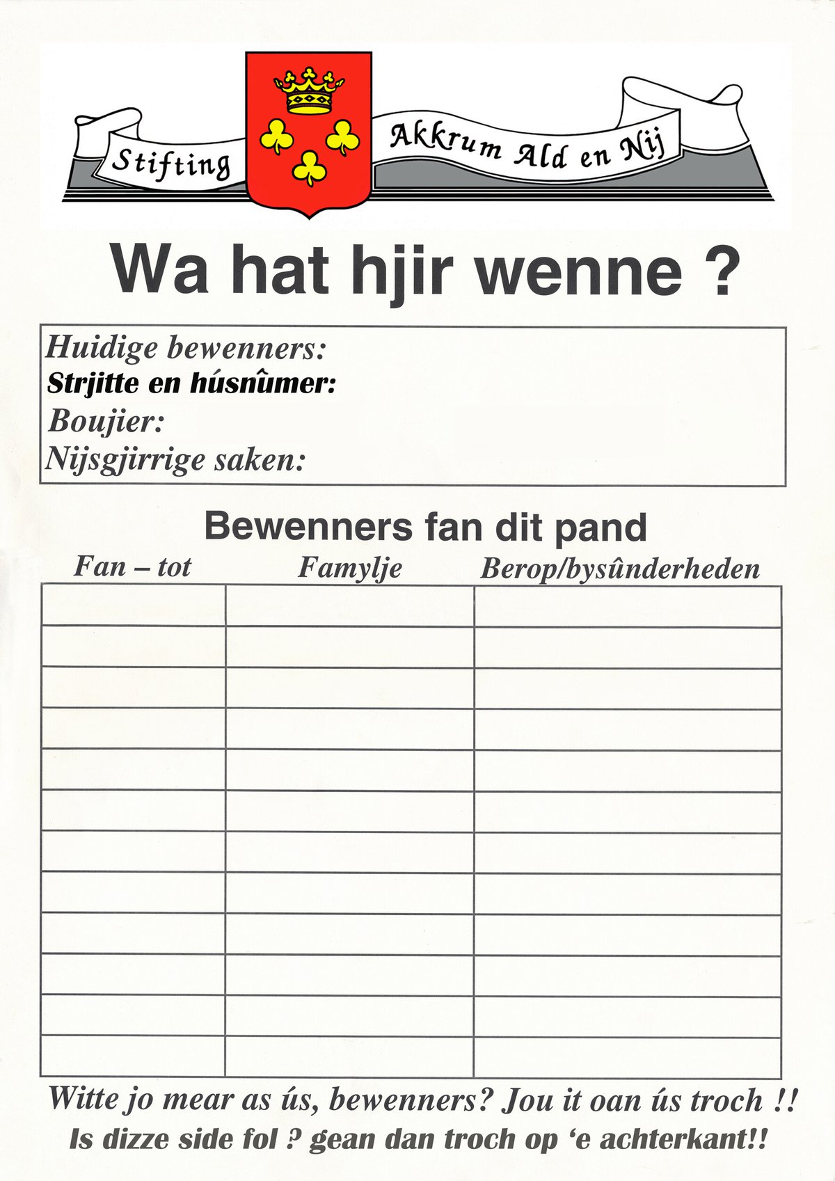 Boven: In 2004 was het honderd jaar geleden, dat de twee blokjes van acht woningen geboud zijn. Sechstjinhúzen (Zestienhuizen) genoemd. In het boekwerkje (Bijna 100 bladzijden) dat toen gemaakt is, staan veel familie foto's van mensen die er ooi, tot 2004, hebben gewoond. (Boekjes zijn NIET meer te koop).