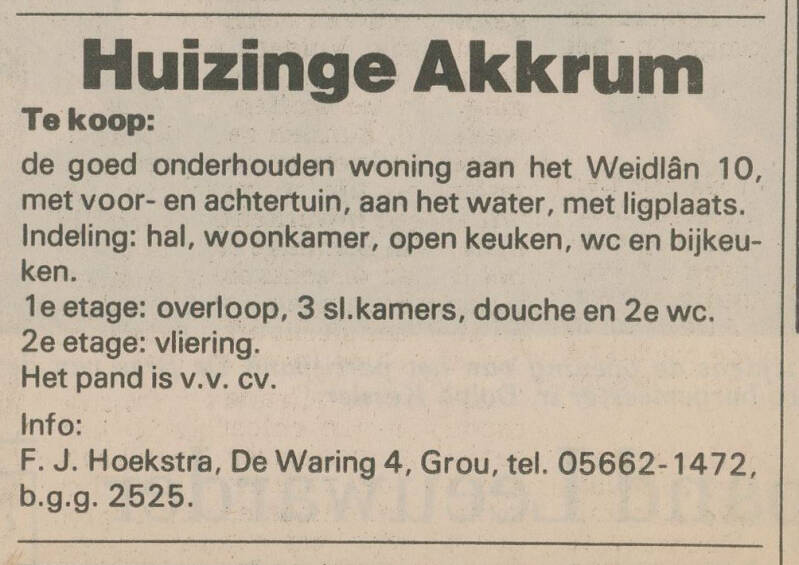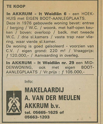 De woningen aan it Weidla3n zijn geboud in 1975 en 1978.